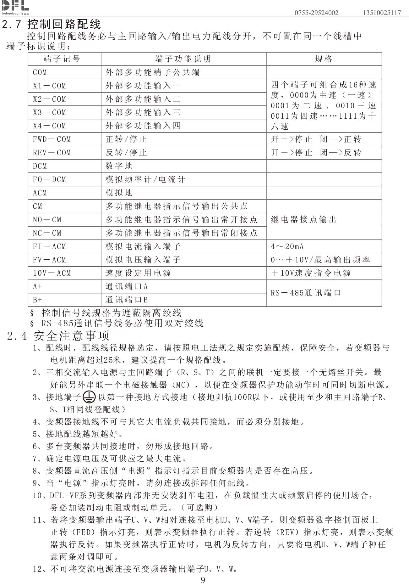 DFL-VF系列通用說明書V409